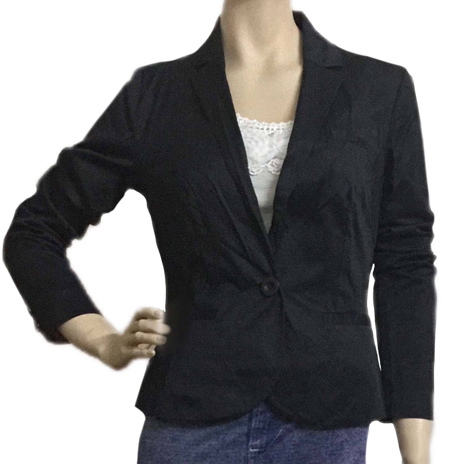 Step into sophistication with our Women’s Black Short Fitted Jacket Blazer, designed to complement your style effortlessly. Crafted from a high-quality blend of 70% cotton and 30% polyester, this blazer offers both comfort and durability. Its one-button closure adds a touch of elegance to any ensemble, making it perfect for professional settings or casual outings. The inner lining, crafted from 100% polyester, ensures a comfortable fit all day long. Versatile and chic, this blazer is a wardrobe essential for every modern woman. Elevate your look with this timeless piece now.
